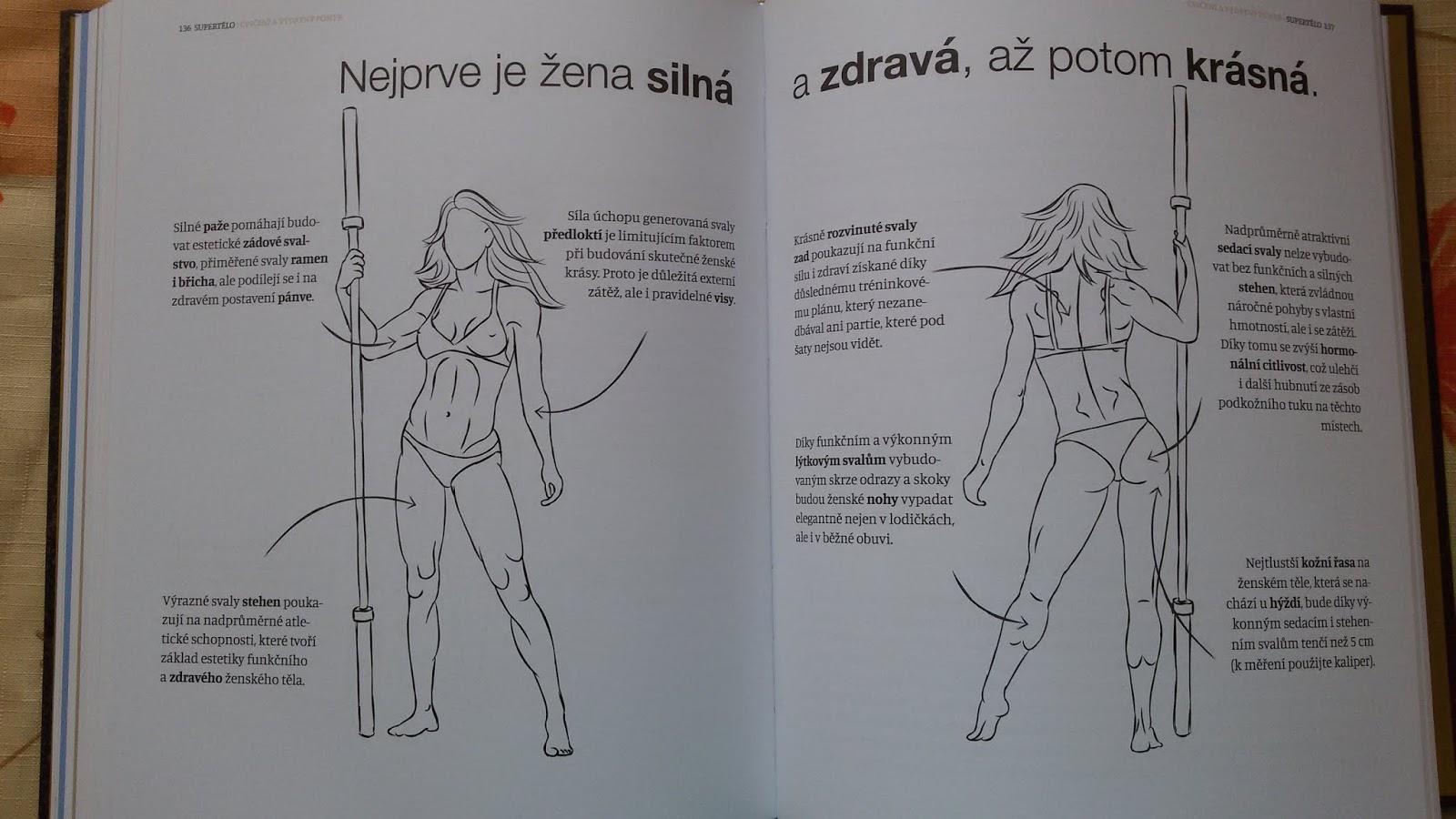 Knihu provázejí i různé tabulky, obrázky se cviky a návody, jak docílit toho, aby naše tělo bylo opravdu tím superetělem, které chceme a po kterém toužíme.